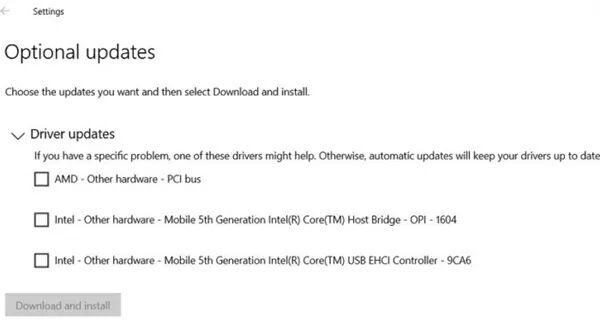 之后你将被允许访问隐藏的可选更新页面,如果没有新的候选驱动可用,则页面会显示一片空白。