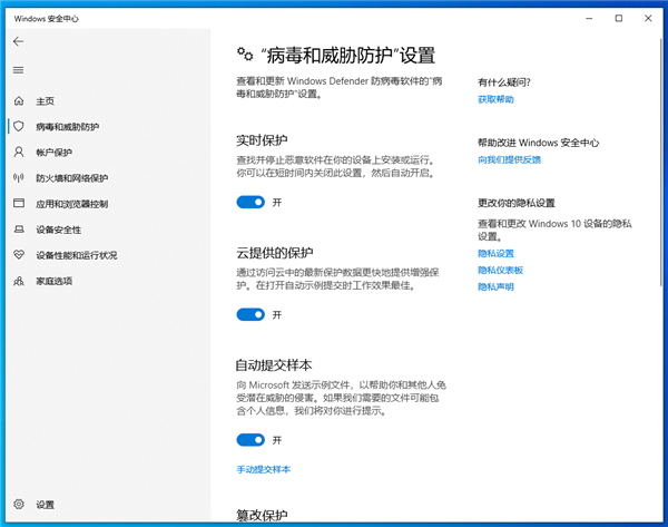 与Windows 8不同,Windows 10安全中心没有提供关闭Windows Defender的选项。你可以暂时关闭实时保护,但系统之后还会自动开启。