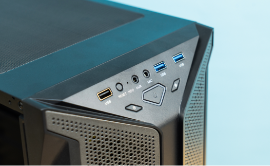 机箱前面板I/O区域提供了丰富的接口以及灯效控制按键